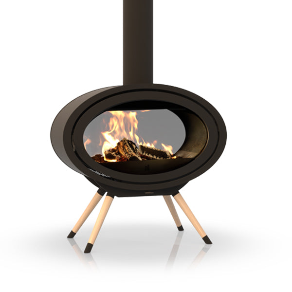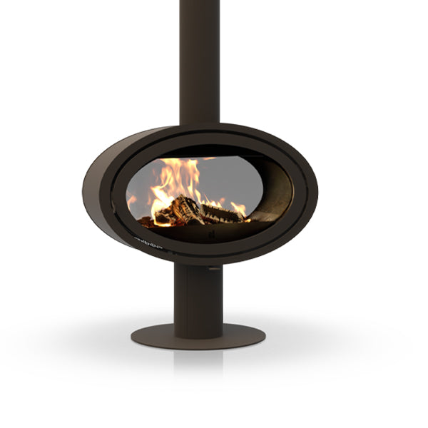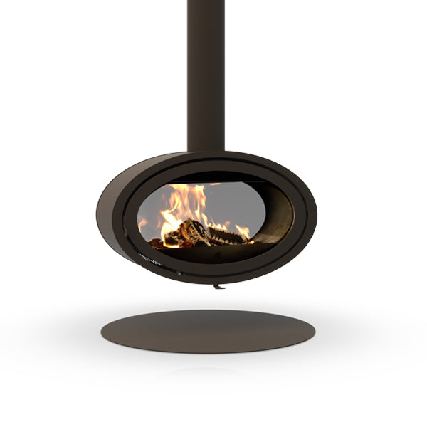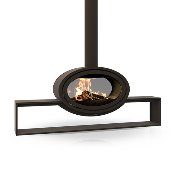 The Oval Tunnel is the stove body only and then has a number of different installation options available such as ceiling suspended, wall hung, or floor standing.