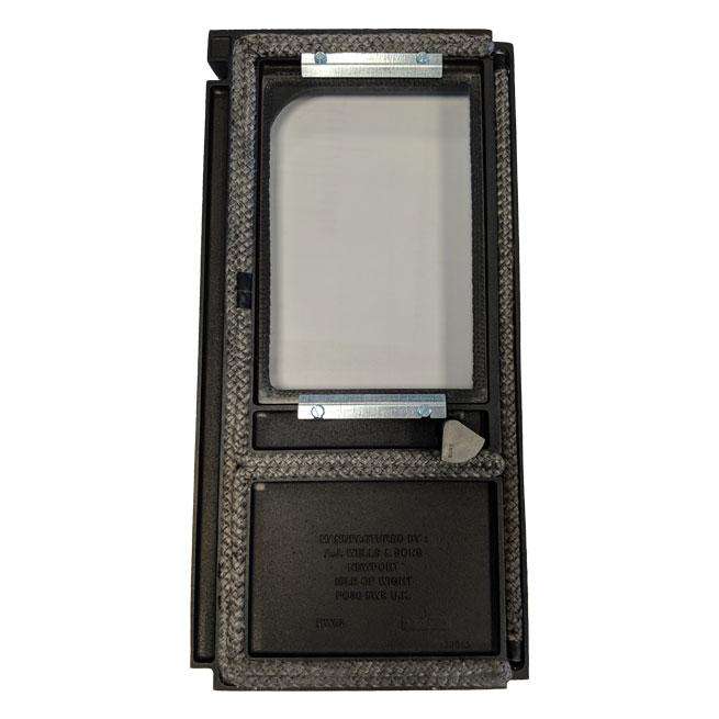 This right-hand door assembly comes complete with the door cast, brass doorknob, catch assembly, glass, rope seal, and glazing bars.