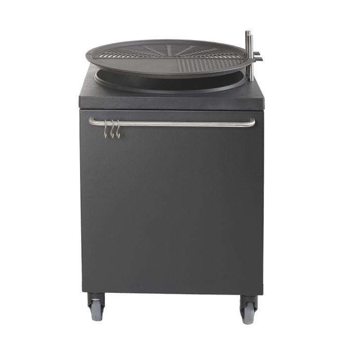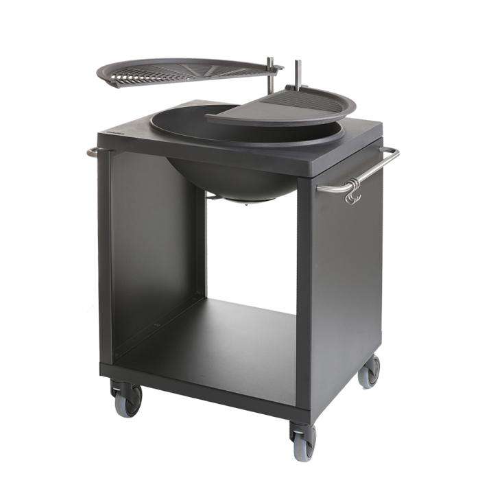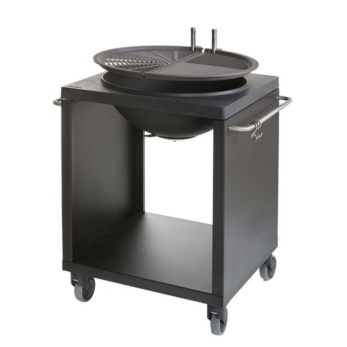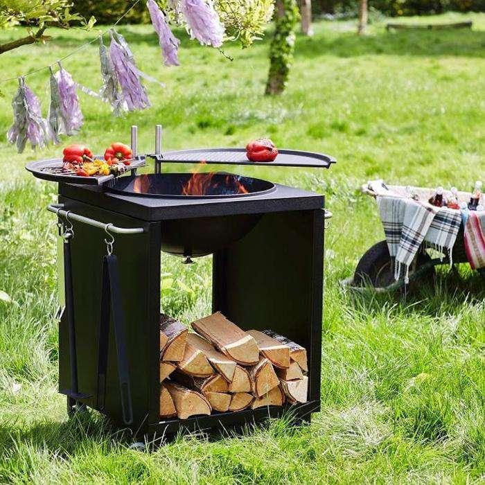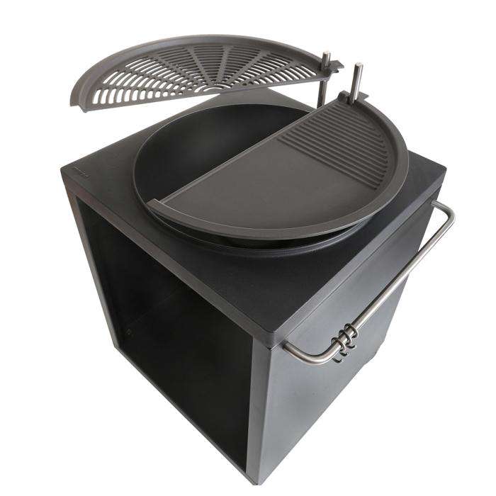 The bowl fire pit, grilling guard, and frying plate are all built to complement your cooking prowess. Featuring a 60cm diameter adjustable cooking grid, the two semicircles can be swivelled aside and adjusted in height, giving you the option of barbecuing at various levels.