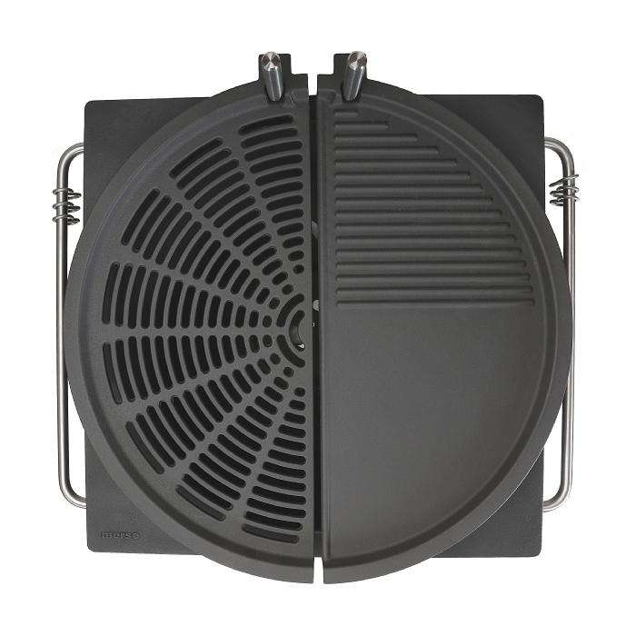 Each semicircle features different grid layouts for optimal cooking. For example, you can place the meat on the flat plate or grid section at a lower height, whilst placing bread or vegetables on a higher plate for a slower cook.