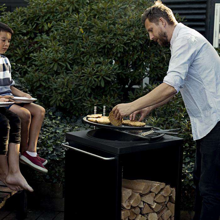 After cooking, the plate and grid can be swivelled aside. the fire pit bowl will now function as an open fire feature to your cosy evening atmosphere.