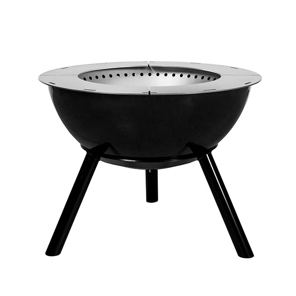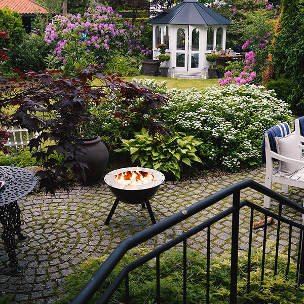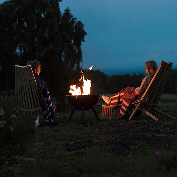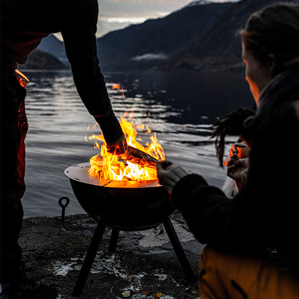 The Espegard Fire Bowl 60 - Rein Premium is a versatile and exclusive fireplace suitable for year-round use. Its tripod stand allows for easy access to the fire, while its double walls and good oxygen flow ensure a warm, clean-burning, and nearly smokeless fire. This elegant fire bowl can be placed anywhere, at any time, and its extra deep, enamelled steel drum also offers the option for grilling.