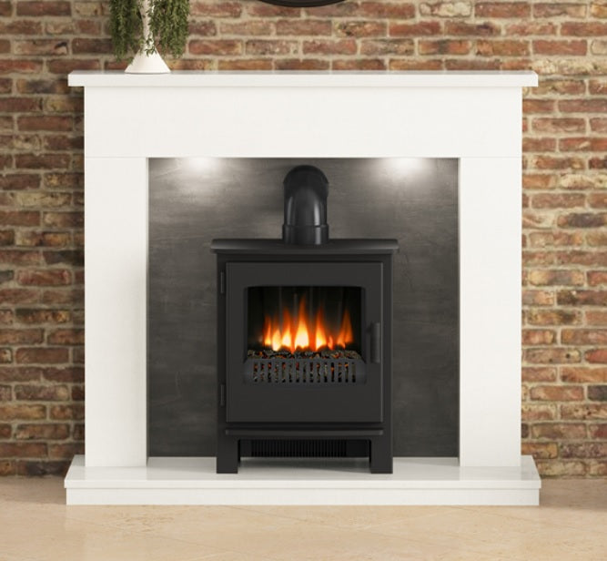 Flare Allensford 48" White & Grey Slate Effect Micro Marble Inglenook