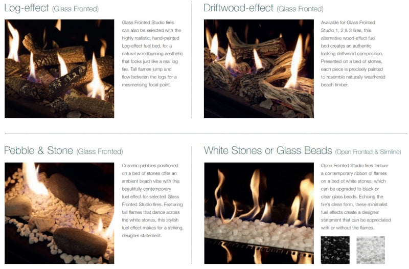 The options available to personalise the Studio range allow you to create your own bespoke design with ease. There is a choice of 3 highly realistic fuel effects, 3 firebox linings and a large range of frame options to tailor this fire to suit any living space. For a complete minimalistic design the edge kit can be used for a frame free installation.