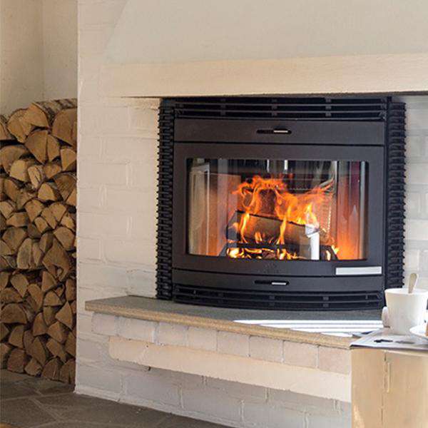 This is a medium-sized fireplace insert with a modern design and features a large glass for a perfect view of the burning logs. The Jøtul I400 firebox has light coloured burn plates that makes the fireplace insert look light and attractive even when you don't have the fire lit.