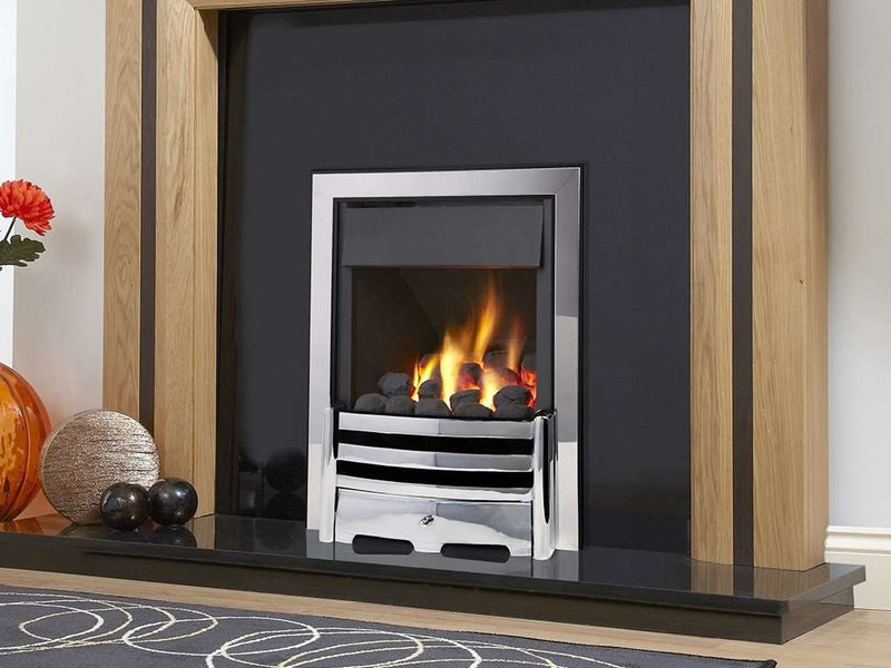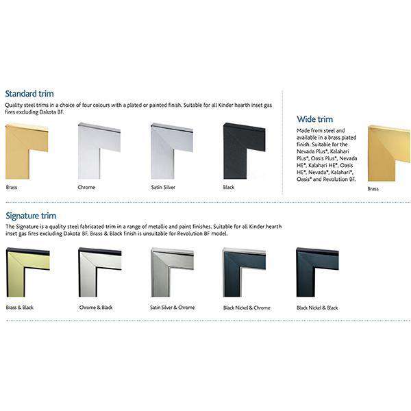 The Kinder Kalahari Plus Gas Fire is part of the 'high efficiency' range from Kinder and is a full depth gas fire that features a highly realistic coal fuel bed as standard, and also has the option of a pebble fuel bed as an alternative.