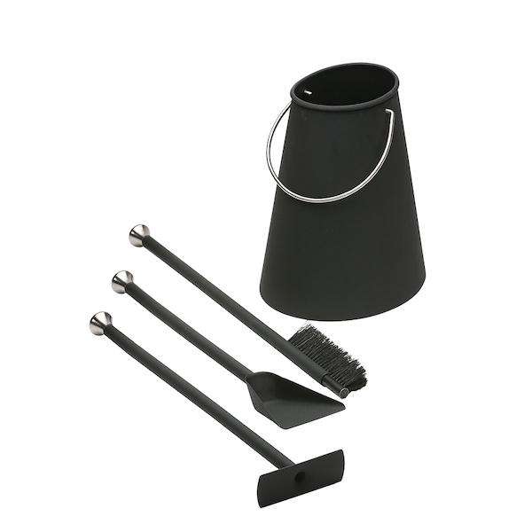 The Morsø Ellipse Fire Tools Set consist of a brush, shovel, and poker which also doubles as a blowpipe, all contained in a fantastic Morso bucket. The bucket can also be used to store gloves, matches and fire-starters.