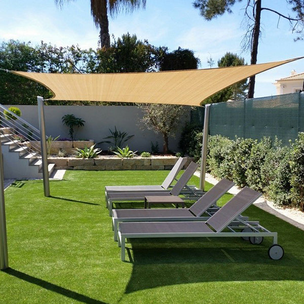 The shade sails are very versatile and a perfect addition to a garden and terrace. But certainly also suitable for business purposes such as catering establishments or daycare centers. Thanks to the open structure, the fabric is water and wind permeable and therefore it can stay outside throughout the season.