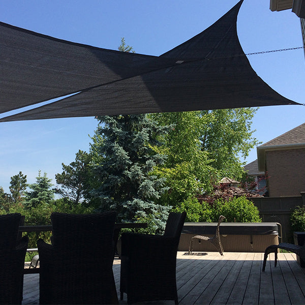The shade sails are very versatile and a perfect addition to a garden and terrace. But certainly also suitable for business purposes such as catering establishments or daycare centers. Thanks to the open structure, the fabric is water and wind permeable and therefore it can stay outside throughout the season.