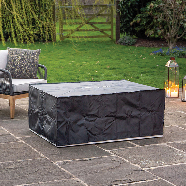 The Cosiloft Firepit Table is delivered including a 30 mBar regulator with gas hose, 4 ceramic logs, lava stones and a battery to power the ignition. The Cosiloft also comes with a metal plate to cover the firepit burner with the logs and lava stones removed so that it can be used as a full coffee table.