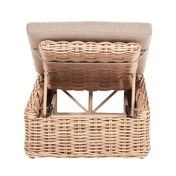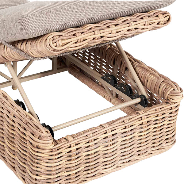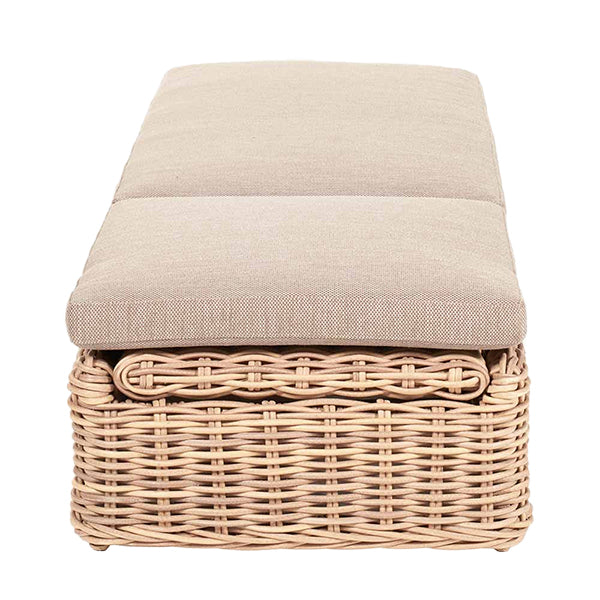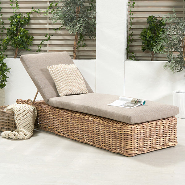The Garda Sunlounger offers an eye-catching double skinned weave and laid-back seating for the ultimate lounging experience. Perfect for lounging in the sun or enjoying long summer evenings. The Sun Lounger, lovingly handcrafted in Vietnam, is made from 10mm gauge, double-skinned, synthetic rattan weave which ensures perfect luxurious styling and a durable weather resistant finish and is perfectly complemented with the Medium Weave Soft Beige season proof cushions.