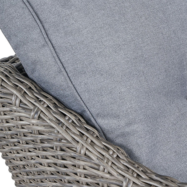 This stunning, outdoor lounge set in neutral tones is crafted from a synthetic half round rattan weave ensuring a modern look, and durable weather resistant finish. This outdoor dining set also features an acacia wood table and matching chair legs, which ensures it's high-quality and robustness. Acacia wood is an environmentally friendly choice as it is a quick-growing wood, tough and long-lasting, making it an excellent choice for outdoor furniture. Each comfortable cushion with stylish grey hue polyester cover, is season proof and fire retardant, ensuring that all details of this set are of the highest quality.