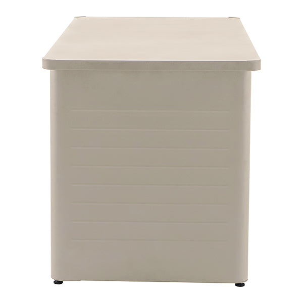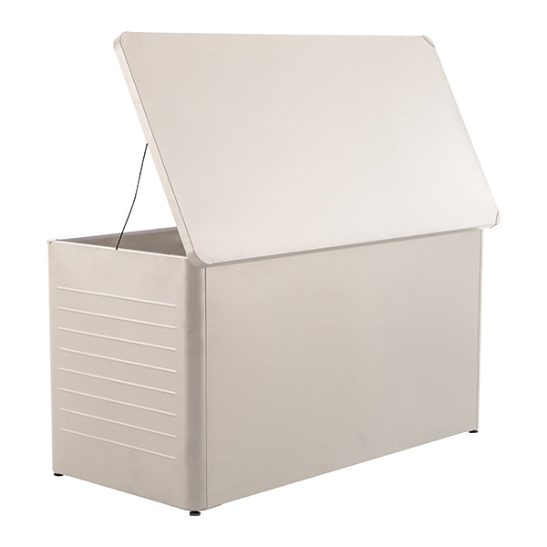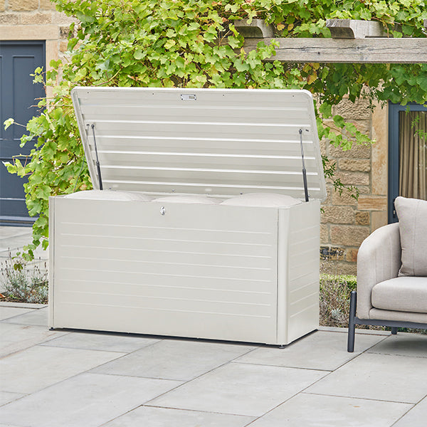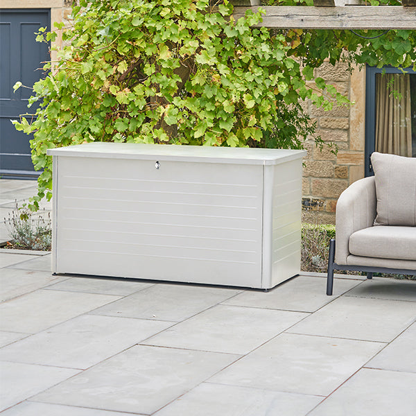 The Rhode Island Large Steel Cushion Box offers a stylish and practical storage solution for your outdoor cushions. Crafted from durable galvanised steel in a sleek pebble colour, this spacious storage box keeps your cushions protected when not in use. Designed with a modern slim, close-lat aesthetic, it seamlessly blends into any outdoor space while providing ample storage.