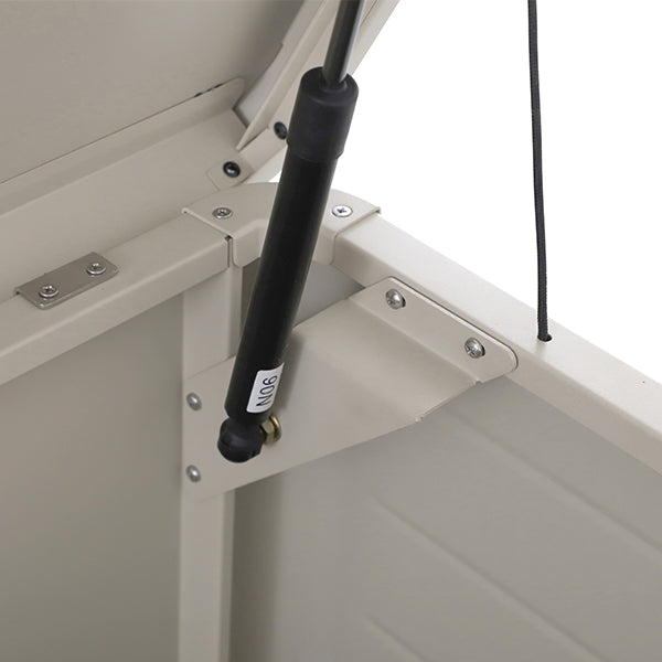 Gas pump hinges ensure smooth opening and closing, while adjustable feet allow for easy movement and stability on uneven surfaces. For added security, the box features a built-in lock and key, keeping your outdoor essentials safe.