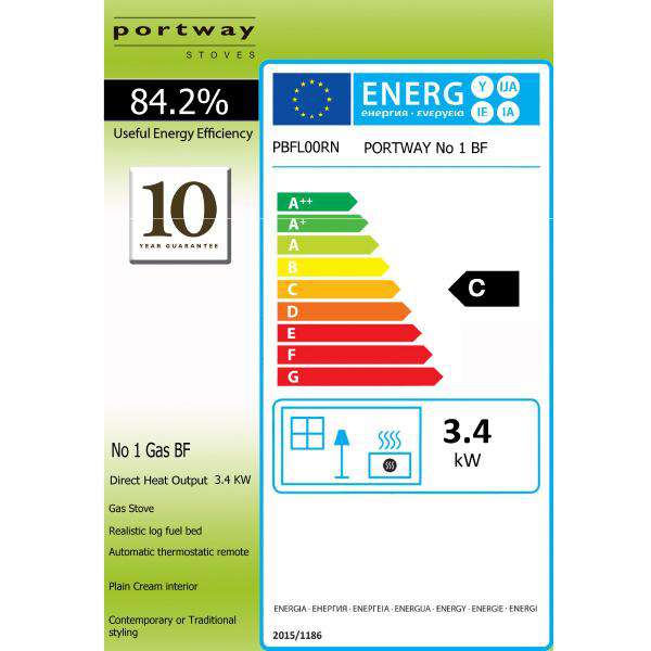 The Portway 1 Balanced Flue Gas has a heat output of 3.4Kw which means this stove is perfect for small to medium sized rooms with a superb efficiency of 84.2%.