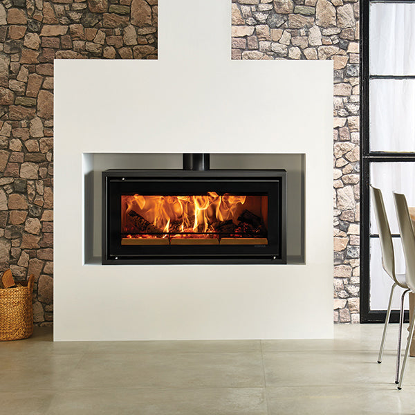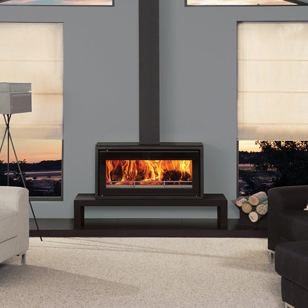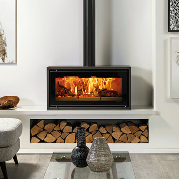 This Freestanding stove version of the Stovax Studio 2 wood burning inset fire offers you up to 8kW of heating capacity as well as superb views of the flames. Featuring an innovative design, this freestanding stove can be installed into an existing chimney breast or looks more at situ freestanding in the room on a non-combustible hearth or atop of one of Stovax's optional stove benches to really elevate its appearance.