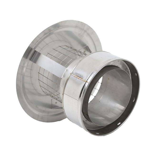 1 x 150mm (6") stainless steel twin wall rain cap. Fitted with anti-bird guard mesh.