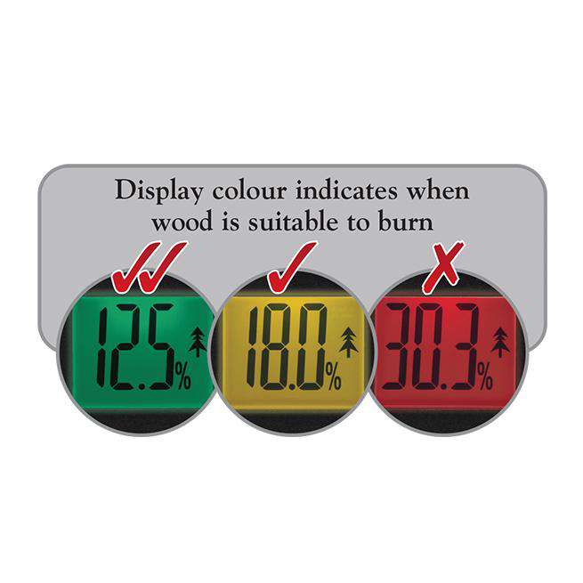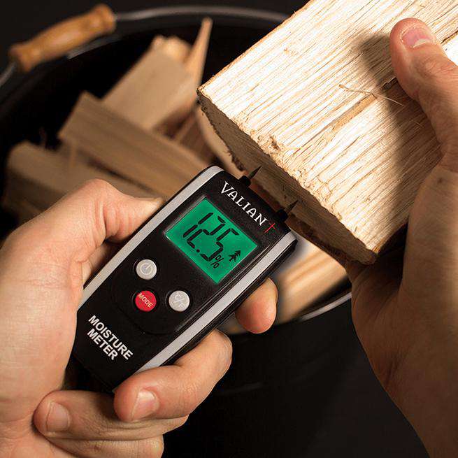 Use the handy Valiant Moisture meter to ensure you get the best burn from your fuel. The newest model not only has a backlight screen to illuminate the reading, but the built-in colour change technology indicates the moisture level of the firewood.