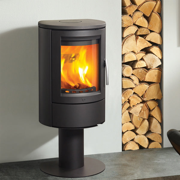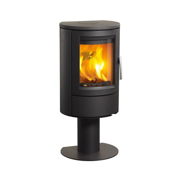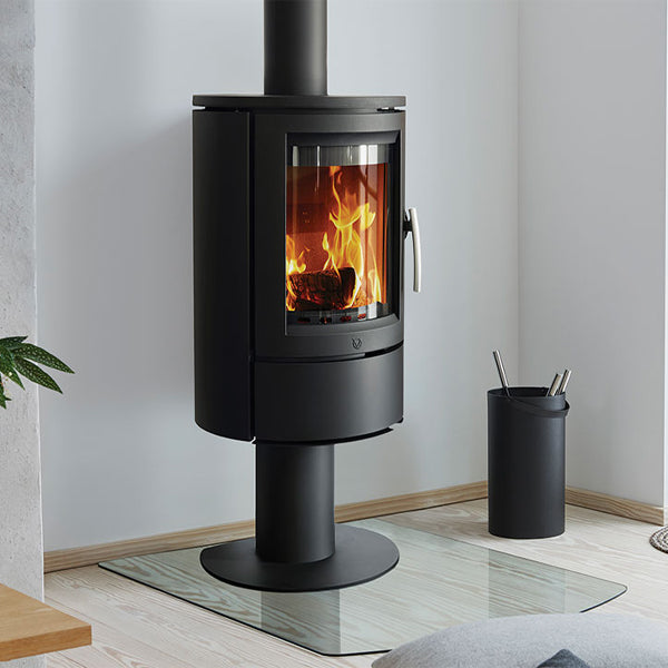 The tallest model in the range, the Aura 11 features an elegant plinth stand that elevates the stove and creates a clean and lightweight aesthetic. With its large firebox, gently curved front and viewing window, the Aura 11 provides a stunning view of the burning logs. Featuring convenient ash tray as well as multiple ergonomic enhancements such as its soft close door, the Aura 11 combines practicality with effortless Scandinavian style.